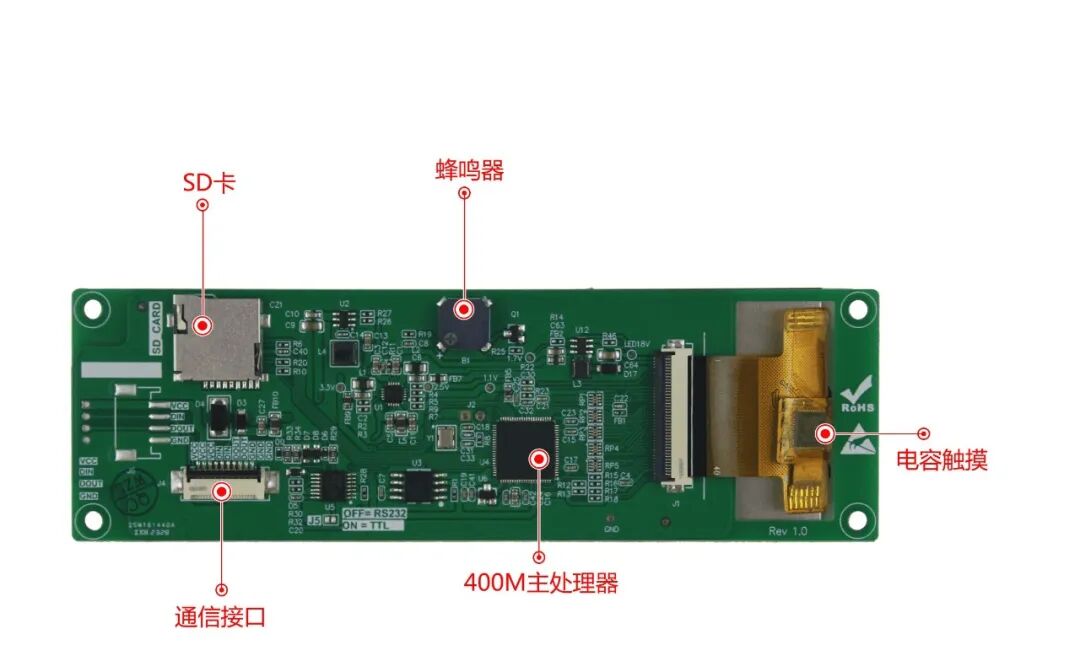 該產(chǎn)品是一款4.6寸分辨率為320*960的長條醫(yī)用級工業(yè)組態(tài)串口屏。采用4.6寸IPS液晶屏、電容屏全貼合一體黑工藝,超薄結(jié)構(gòu)設(shè)計(jì),分辨率為320*960,支持電容觸摸。擁有炫酷的動畫效果,頁面切換流暢。可播放視頻,屏幕可視區(qū)域?yàn)椋?10.3mm*36.8mm(A.A),產(chǎn)品尺寸為:137.4mm*42.8mm*9.4mm,超薄結(jié)構(gòu),安裝簡易方便??赏ㄟ^嚴(yán)苛EMC測試,廣泛應(yīng)用于工業(yè)機(jī)柜、智能家居、家電行業(yè)等場景。